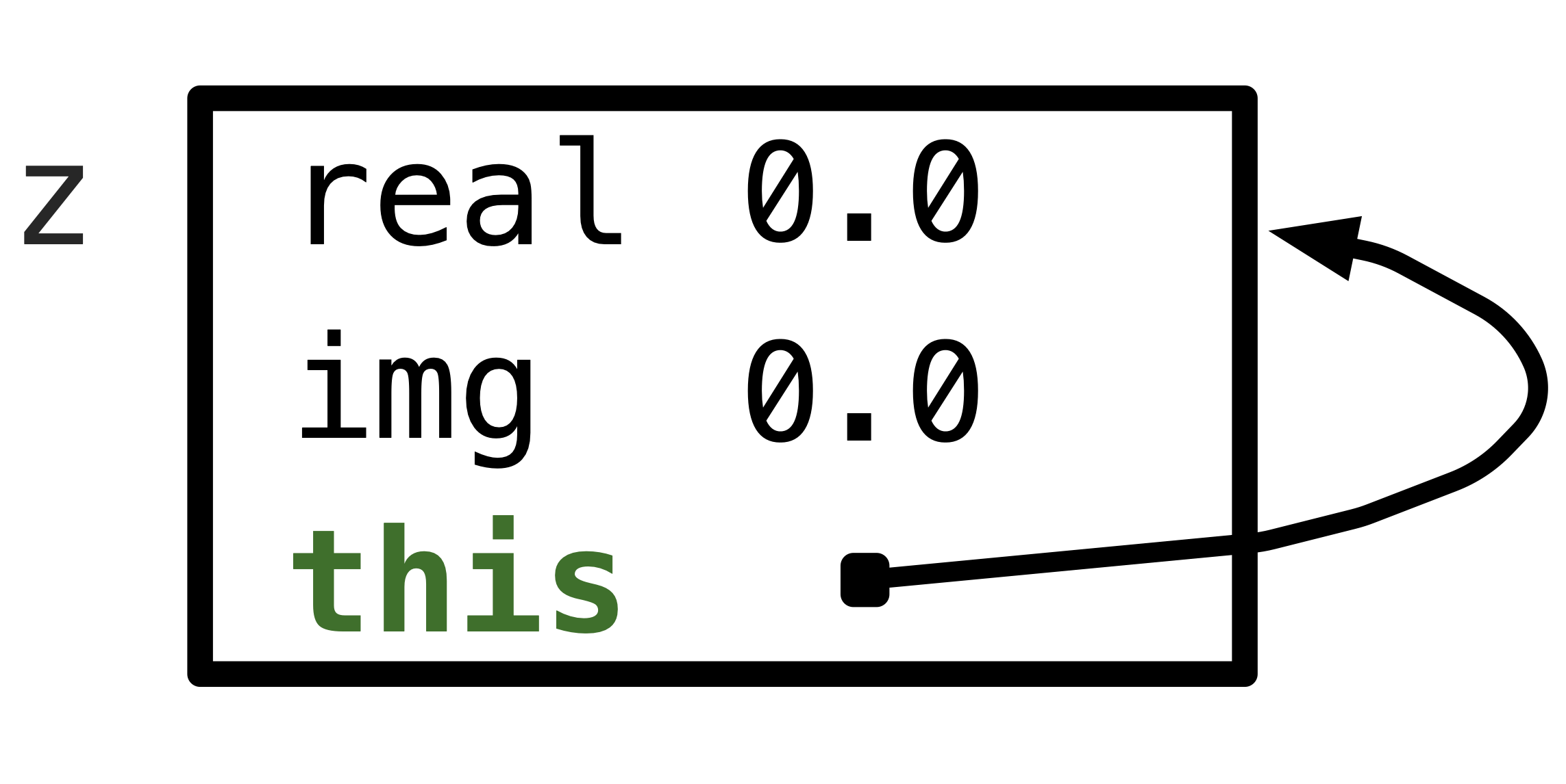 Fig. 5.4 The this pointer points to the object on which we invoke the function on, e.g. object z. We can dereference the this pointer using *this to get the left-hand side object itself.#